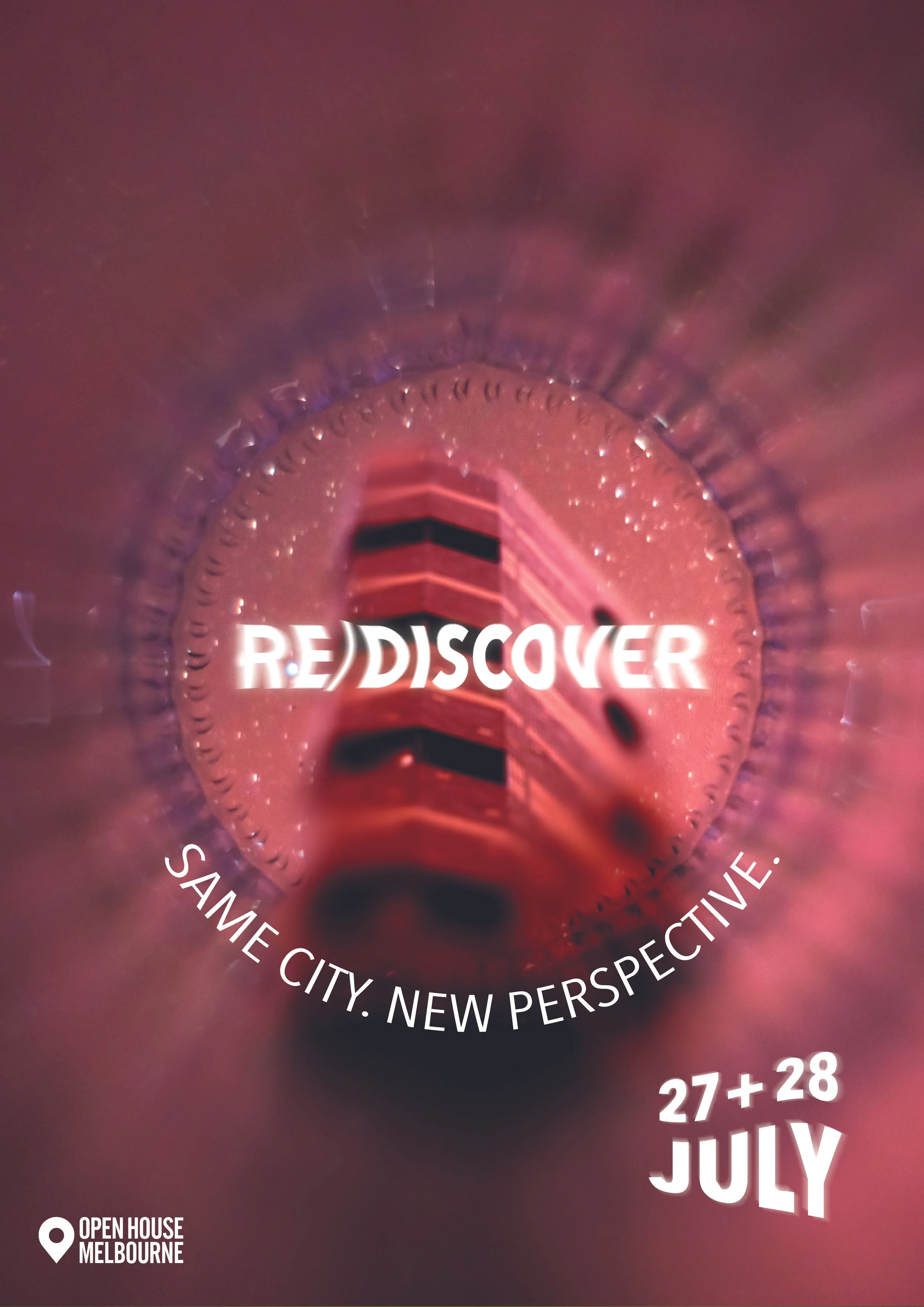 Collaborating with Studio Payne to create the 2024 brand identity “Rediscover” for Open House Melbourne, this project produced an cohesive campaign that unifies Melbourne’s unique architectural environments within a visual motif of distortion and the ability to perceive familiar environments with a fresh lens.